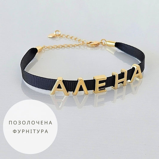 Іменний браслет на стрічці з українськими літерами